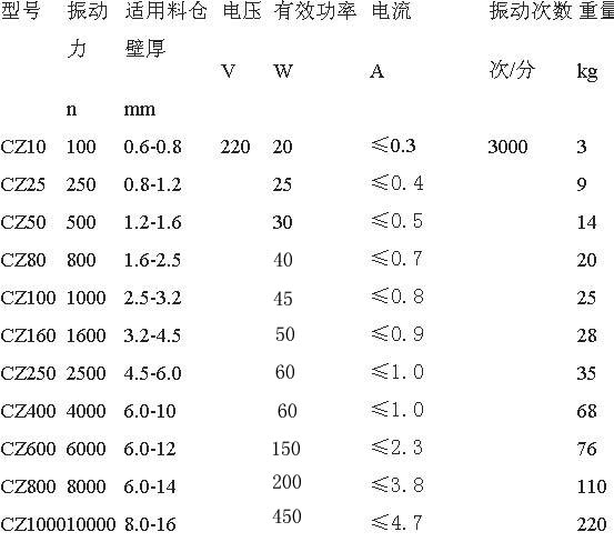 倉壁振動器技術參數