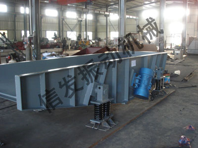 ??機器由箱體、振動電機、柵條排和彈簧減振裝置等四部分組成。箱體為一剛性結構,內測 與物料接為雙臺階式,間隙呈楔形以利徘料,柵條材質為耐磨高錳鋼。減振裝置采用優質螺旋 彈簧。