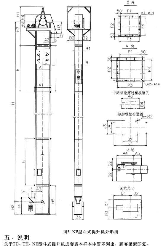 NE型斗式提升機外形尺寸